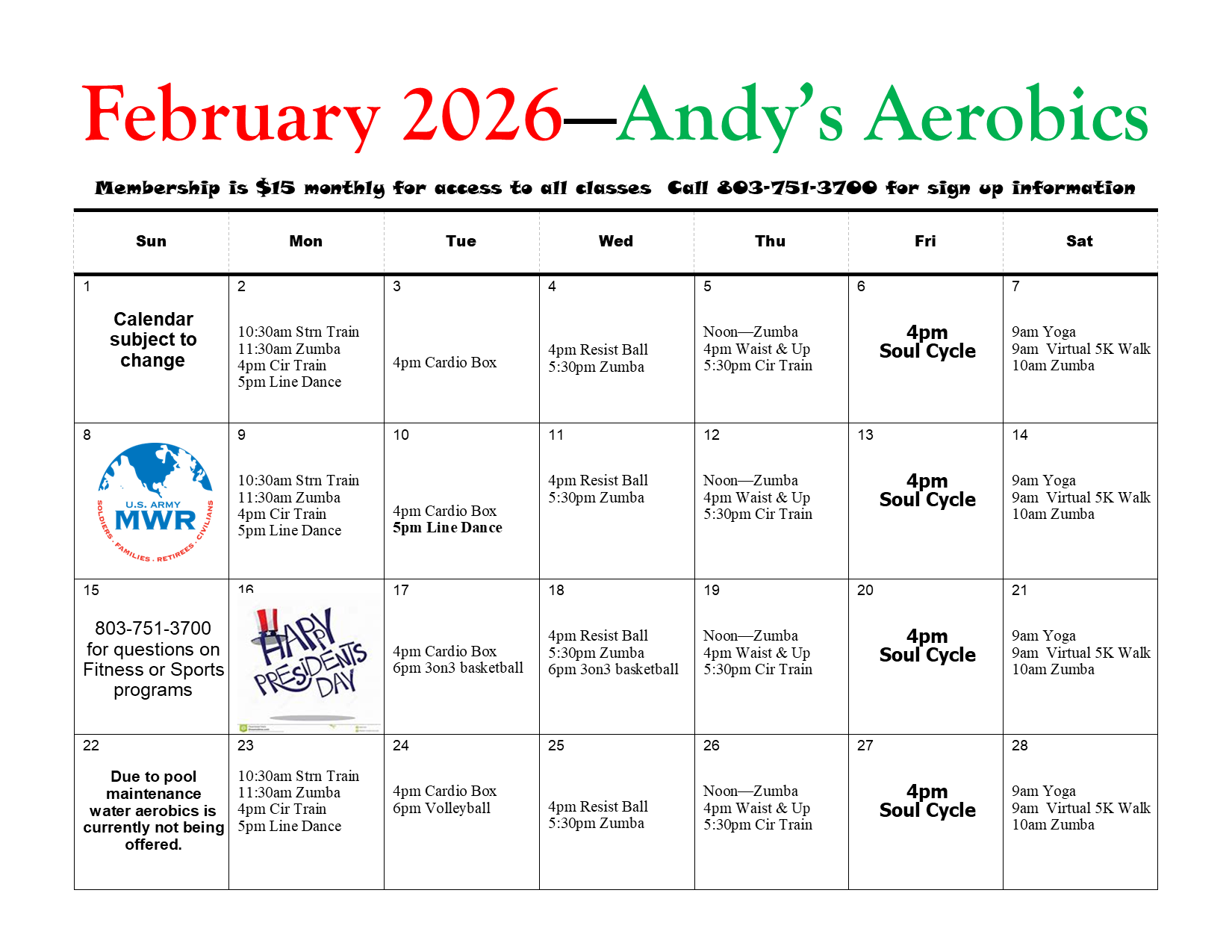 Fitness and Wellness Office: 803-751-3700